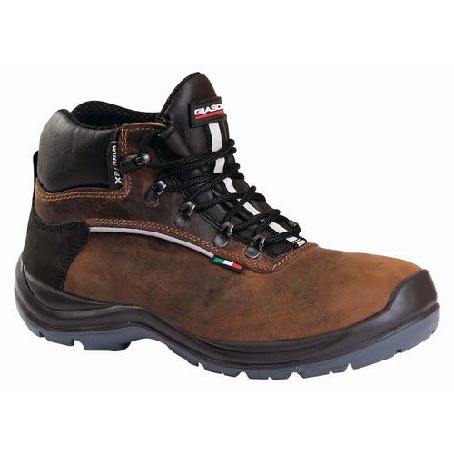 Calzatura alta di sicurezza con membrana in windtex a rapido sfilamento. Pelle fiore ingrassato IDROTECH® WRU con inserto rifrangente. Tallone in pelle fiore Nubuck IDROTECH® WRU. Fodera interna in membrana impermeabile Windtex® morbida, con ottima traspirabilità e resistenza all’abrasione. Linguetta morbida, foderata e imbottita. Puntale 200J composito a base polimerica atermico e amina in tessuto composito antiperforazione flessibile norma EN 12568. Suola HARD ROCK antistatica bidensità: poliuretano e gomma antistatica, resistente all’idrolisi ISO 5423:92, agli idrocarburi e all’abrasione, antishock e antiscivolo SRC. Soletta interna 5000 trimaterial extracomfort, traspirante, estraibile, anatomica, assorbente, ESD e antibatterica. Realizzato in Italia Suola resistente agli idrocarburi CE Antistatico