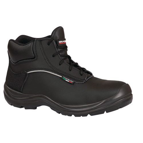 Scarpa alta in pelle con tallone in pelle antigraffio e inserto rifrangente.