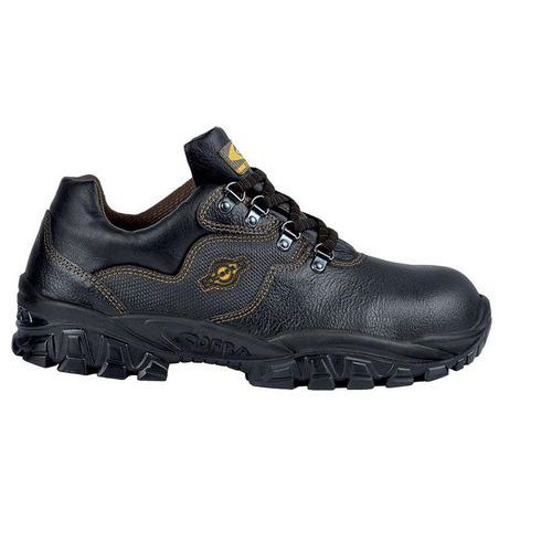 Scarpe di sicurezza conformi alla normativa EN ISO 20345:2011. Tomaia in pelle stampata idrorepellente. Fodera esterna in sintetico traspirante, mentre la fodera interna è realizzata in poliammide, traspirante, assorbente e deassorbente, antiabrasione. Soletta ad elevata portanza e spessore variabile (12 mm - 8 mm - 3,8 mm), termoformata, anatomica, forata, rivestita in tessuto altamente traspirante, antistatica grazie ad uno specifico trattamento superficiale e a cuciture realizzate con filati conduttivi. Suola in poliuretano bidensità. Lamina in acciaio INOX.