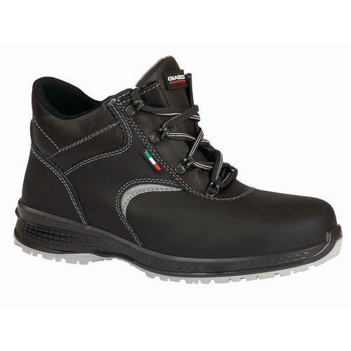- Scarpa alta, in pelle groppone con fodera in tessuto traspirante e resistente all’abrasione.