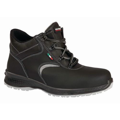 - Scarpa alta, in pelle groppone con fodera in tessuto traspirante e resistente all’abrasione.
