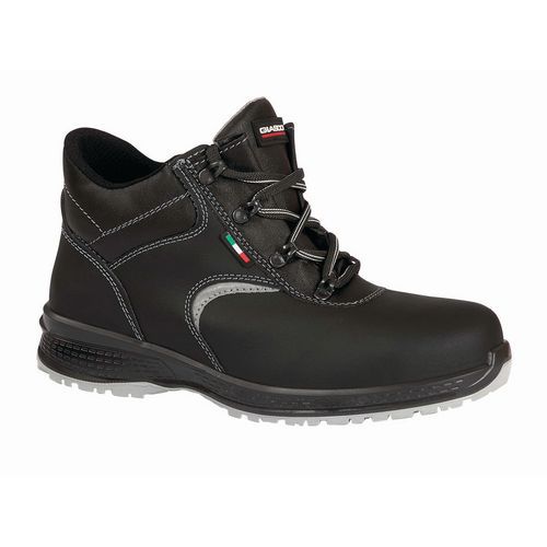 - Scarpa alta, in pelle groppone con fodera in tessuto traspirante e resistente all’abrasione.