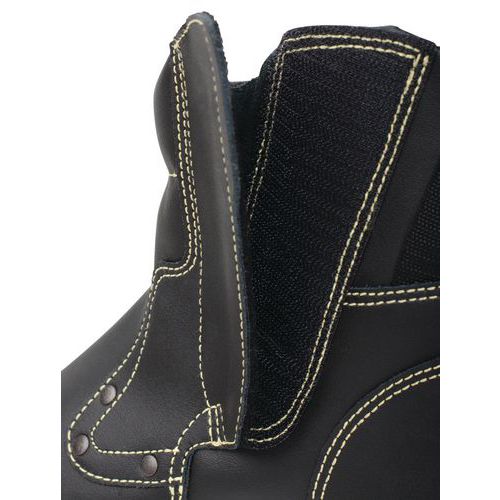 Scarpa dal puntale in alluminio. Punta della scarpa con rinforzo “Pronose” che protegge da abrasioni e tagli. Cuciture, suola e parte superiore resistenti all’esposizione al calore: fino a 427°C a breve termine e a 204°c a lungo termine. Calzata eccellente e comoda sia per uomo che per donna. Soletta interna ventilata. Idrorepellente con suola resistente agli oli. Sistema di assorbimento shock in Ergothan e PORON® XRD. Ambienti principali di utilizzo: interni, esterni, puliti, a rischio di perforazione della suola