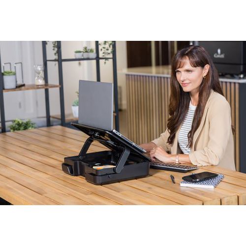Il supporto prevede 5 regolazioni dell'altezza per favorire una buona posizione ergonomica quando si guarda lo schermo del pc portatile.