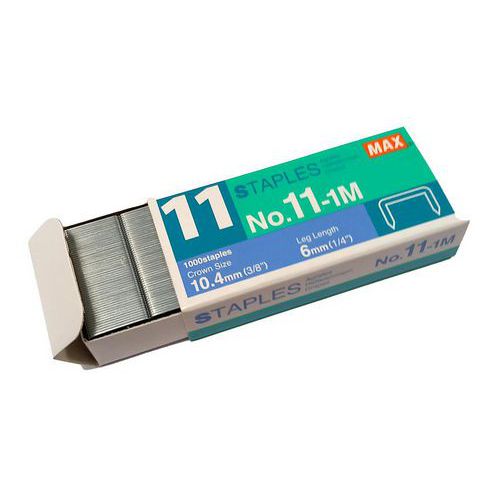 | Descrizione | Scatola da 1000 punti metallici per spillatrice elettrica MAX BH11F, Altezza: 6 mm, Larghezza: 10.4 mm |