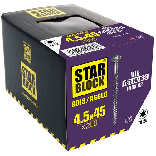 | Descrizione | Scatola da 200 viti Torx 4,5x45mm, Materiale: Inox, Filettatura Ø: 4.5 mm, Cavità a vite: Torx |