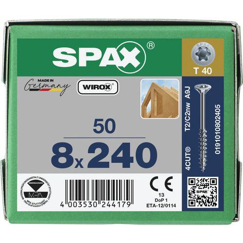 Scatola da 50 viti in legno a testa svasata TX Ø 8 mm - Spax