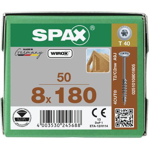 Scatola da 50 viti per legno con testa piana TX Ø 8mm - Spax