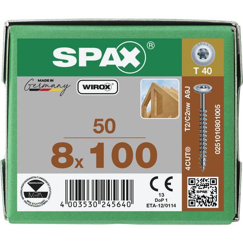 Scatola da 50 viti per legno con testa piana TX Ø 8mm - Spax