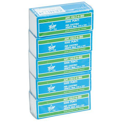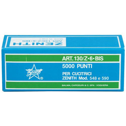 | Descrizione | Scatola da 5000 punti metallici 6/6 Zenith, Tipo graffa: 6/6, N. di graffe/scatola: 5000 |