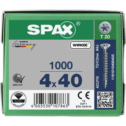 | Descrizione | Scatola di viti universali a testa svasata T-Star Plus TX Ø, Materiale: Acciaio, Filettatura Ø: 4 mm |