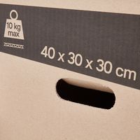 Scatola per traslochi, Altezza interna: 30 cm, Larghezza interna: 29.5 cm, Lunghezza interno: 39.5 cm Scatola per traslochi, Altezza interna: 30 cm, Larghezza interna: 29.5 cm, Lunghezza interno: 39.5 cm