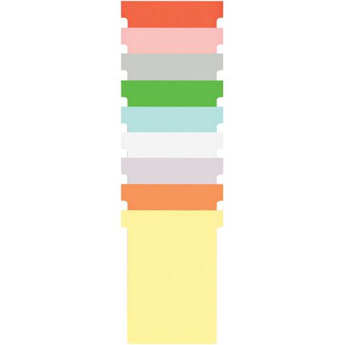 Le schede a T indice 3 vengono proposte in diverse dimensioni per consentire di registrare informazioni sintetiche o molto dettagliate. Grazie alla vasta gamma di colori, potete facilmente attribuire un codice colore per ogni team, progetto e/o risorsa e disporre rapidamente di una visione generale della situazione.