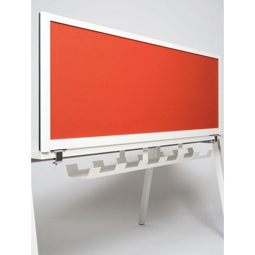 - Telaio solido in alluminio con pannello agglomerato rivestito in tessuto colorato.