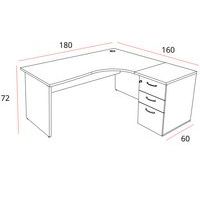 | Descrizione | Scrivania compatta con cassettiera, Tipo di base: Pannello, Montaggio: Da montare, Larghezza totale: 180 cm |