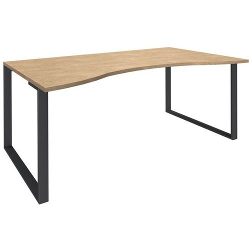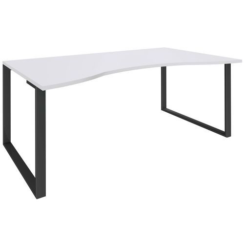 Scrivania dritta con un lato a doppia onda. Piede a U semplice e spesso, in acciaio. Scrivania perfettamente stabile. I ripiani sono fissati con inserti e viti in metallo su una struttura autoportante per favorire il montaggio e lo smontaggio degli elementi.