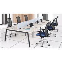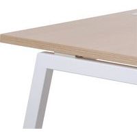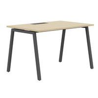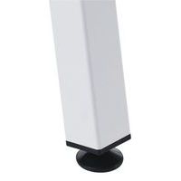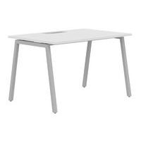 Scrivania dritta con piedi ad arco (A). Piano in melaminico di 25 mm di spessore con profili in ABS di 2 mm. 10 mm tra i piedi e la scrivania. 2 travi di supporto in metallo (40x20 mm) Tubo dei piedi in metallo (40x40 mm) con piedini in plastica per il livellamento (+10 mm). Piano con apertura per il passaggio dei cavi, con tappo.