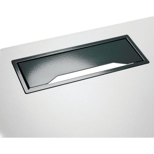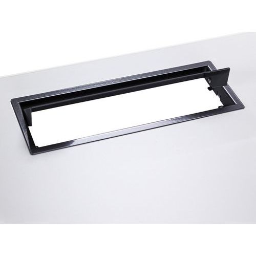 Scrivania dritta regolabile in altezza al livello dei piedi. Piano in melaminico di 25 mm e profili in ABS di 2 mm. 2 travi di supporto in tubo metallico da 40x20 mm. Struttura dei piedi dritta in metallo 40x40 mm con piedini in plastica per il livellamento. Ripiano munito di apertura con tappo per il passaggio dei cavi.