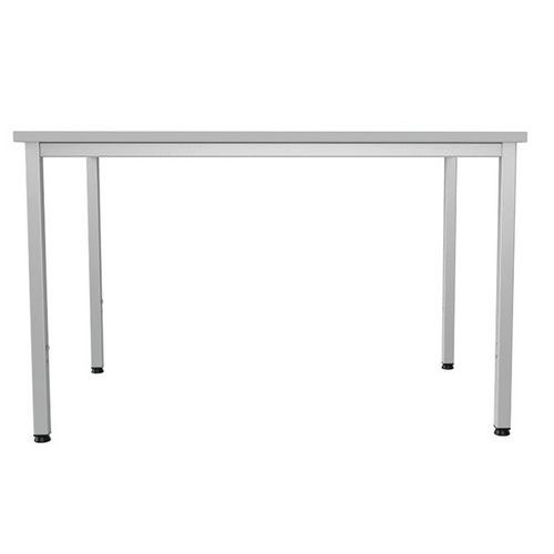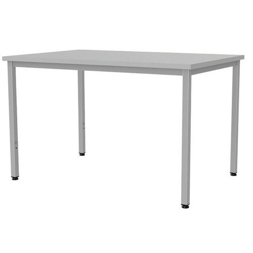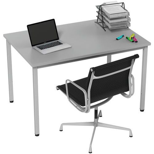 Scrivania robusta e dal design classico. Ripiano antiriflesso ad alta resistenza (spessore: 25 mm). Piedi con martinetti di regolazione. Struttura autoportante e pannello di fondo in metallo.