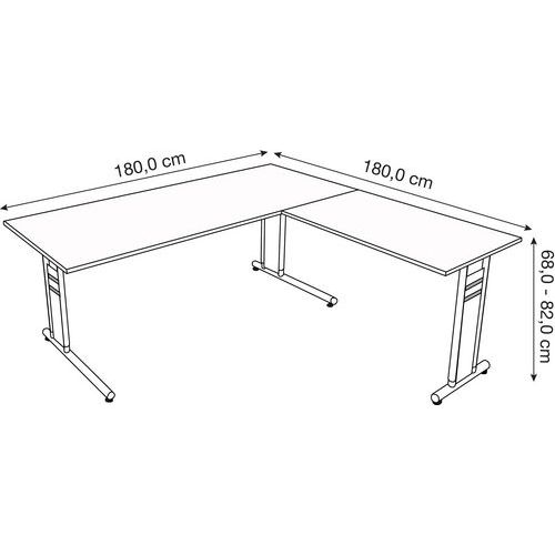 Scrivania regolabile con estensione Form 4, Tipo di base: A forma di L, Larghezza totale: 180 cm