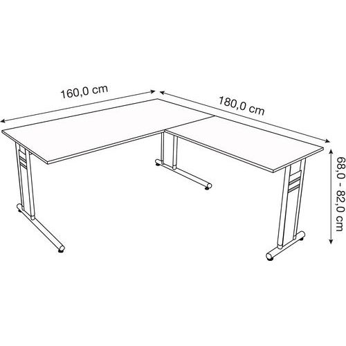 Scrivania regolabile con estensione Form 4, Tipo di base: A forma di L, Larghezza totale: 160 cm