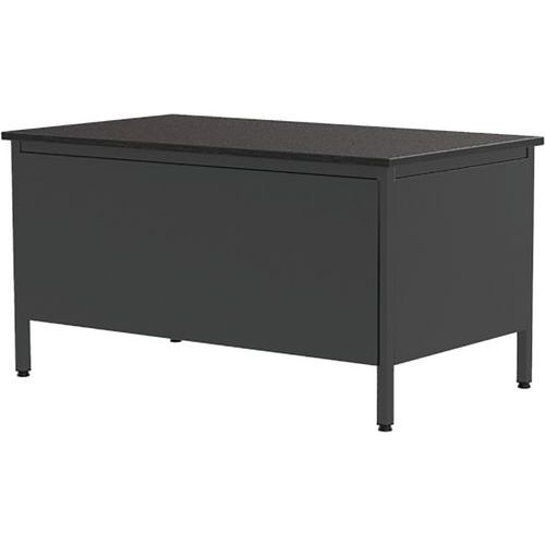 Scrivania semi direzionale con cassettiera della gamma Confort 2. Gambe tubolari quadrate 35x35x2 mm con rinforzo angolare in metallo. Base su martinetti regolabili in materiale sintetico. Solida struttura metallica in lamiera da 1,5 mm. Le parti metalliche sono verniciate in polvere epossidica di poliestere. Altezza del tavolo fisso: standard a 75 cm (incl. top da 25 mm). Realizzato nell'UE
