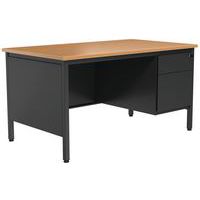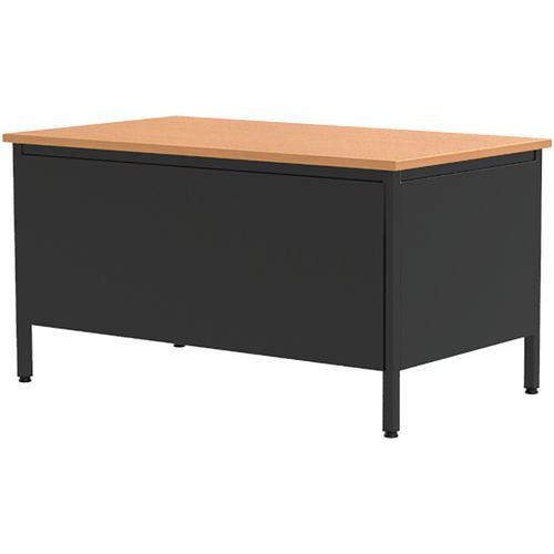 Scrivania semi direzionale con cassettiera della gamma Confort 2. Gambe tubolari quadrate 35x35x2 mm con rinforzo angolare in metallo. Base su martinetti regolabili in materiale sintetico. Solida struttura metallica in lamiera da 1,5 mm. Le parti metalliche sono verniciate in polvere epossidica di poliestere. Altezza del tavolo fisso: standard a 75 cm (incl. top da 25 mm). Realizzato nell'UE