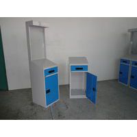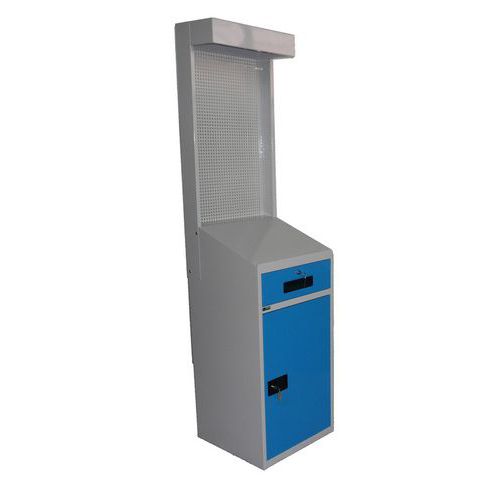 | Descrizione | Scrivimpiedi-pastorale traforato-cassetto e anta con ripiano, Carico max.: 100 kg, Materiale: Acciaio |