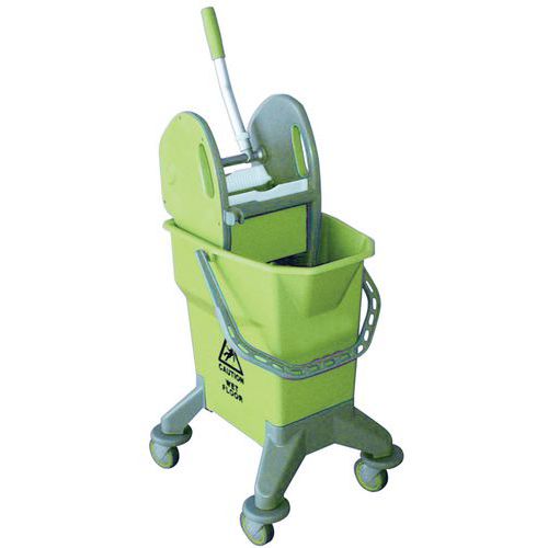 | Descrizione | Secchio carrellato con strizzatore a pressa, Capacità: 25 L, Colore: Verde, Altezza: 96 cm, Larghezza: 38 cm |