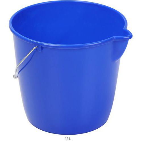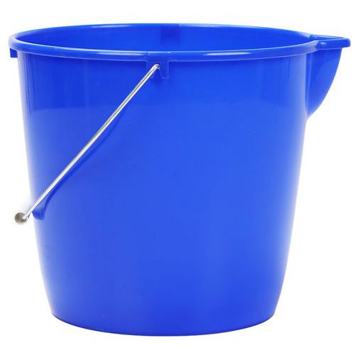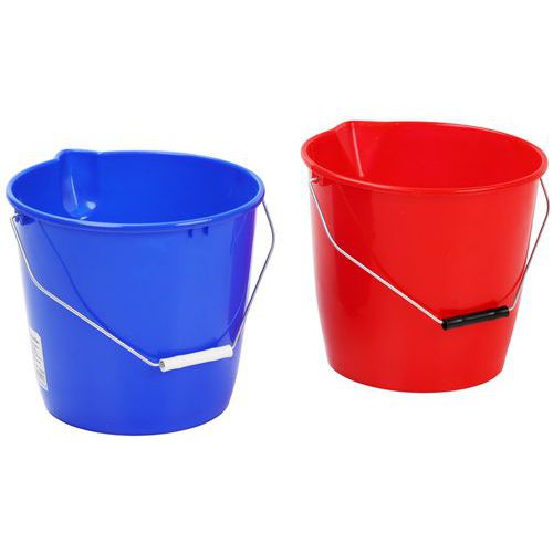 Secchio rotondo con beccuccio erogatore - 12 L - Manutan Expert - Con beccuccio erogatore e manico in metallo, provvisto di impugnatura in plastica, per un uso frequente. Utilizzate il secchio blu per l'acqua pulita e il secchio rosso per l'acqua sporca.