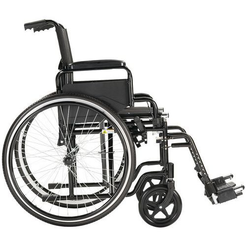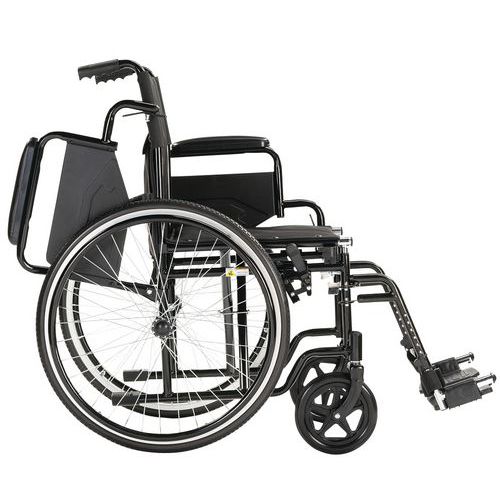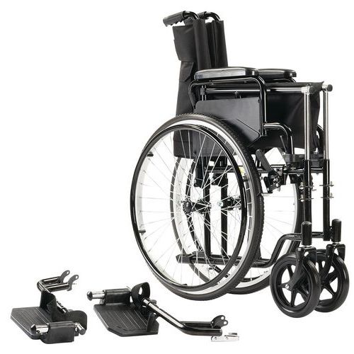 | Descrizione | Sedia a rotelle con schienale fisso nero, Profondità Sedile: 42 cm, Altezza seduta: 48 cm |