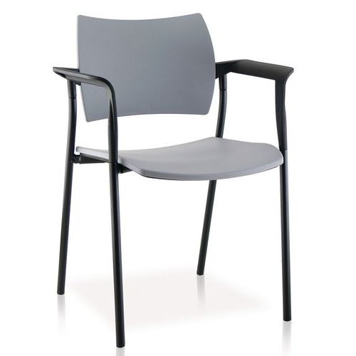 Sedia impilabile per ottimizzare lo spazio. Ricevete gli ospiti su sedie con o senza braccioli o scegliete una combinazione dei due modelli. La scelta migliore per spazi utilizzati in modo intensivo Etichettato Ecocert e Ecolabel. Ricevete gli ospiti in una sala di attesa o di riunione semplice ed elegante