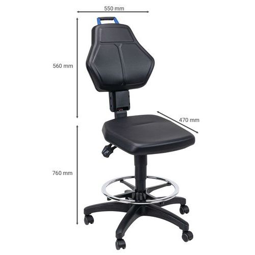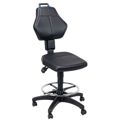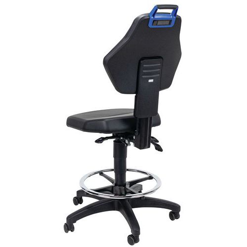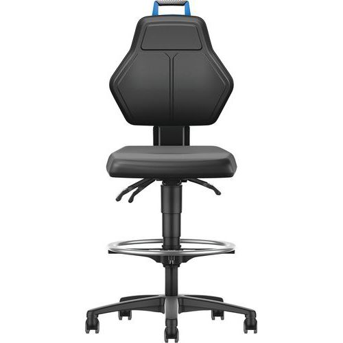 | Descrizione | Sedia da officina, Seduta, materiale: Finta pelle, Schienale: si, Sedia modello: Alto, Poggiapiedi: si |