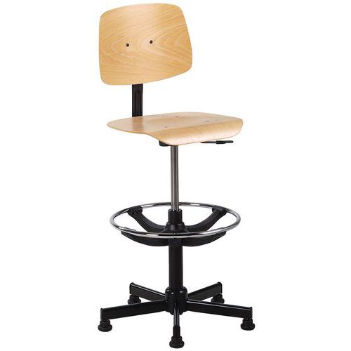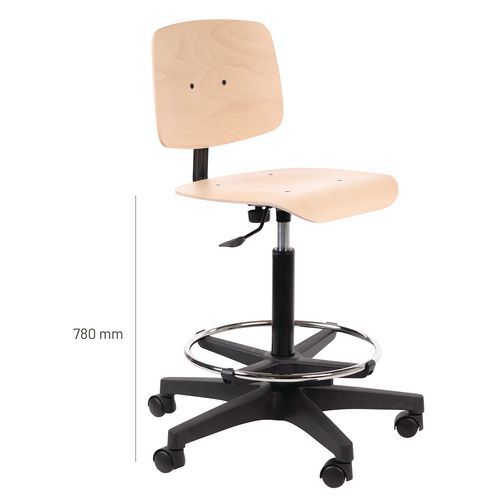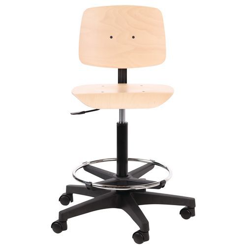 | Descrizione | Sedia da officina alta, Tipo di base: Centrale, Seduta, materiale: Legno multistrato, Schienale: si |