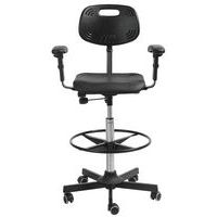 Pratica sedia da lavoro con braccioli. Realizzata con materiali di alta qualità che garantiscono una lunga durata, anche in ambienti difficili. La seduta e lo schienale sono in poliuretano stampato. Il materiale comodo e pratico rende la sedia adatta per l'uso nel settore industriale. Adatta per l'uso in ambienti difficili, è facile da pulire. Il meccanismo Euromatic facilita la regolazione rapida dell'angolo di seduta e dello schienale. La sedia può essere regolata di 12° in avanti e 3° indietro. Lo schienale è inclinabile di 16° in avanti e 6° indietro. Con braccioli, piedini e rotelle.