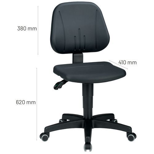 | Descrizione | Sedia da officina ergonomica Bimos Unitec, Tipo di piede: Rotelle, Seduta, materiale: Poliuretano |