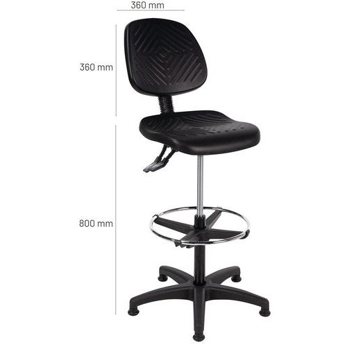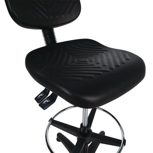 Sedia da officina Techno, molto comoda grazie all'altezza dello schienale.