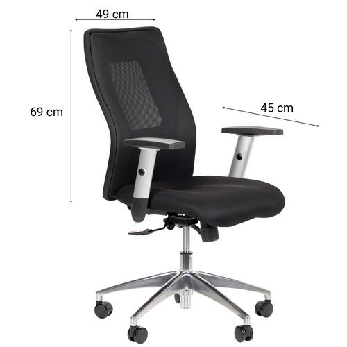 La sedia da ufficio con schienale medio Penelope e base grigia assicura il contatto costante tra la sedia e la schiena. Altezza della seduta regolabile. Altezza braccioli regolabile con meccanismo di bloccaggio. Ideale per il telelavoro. Densità della seduta 25 kg/m².