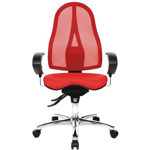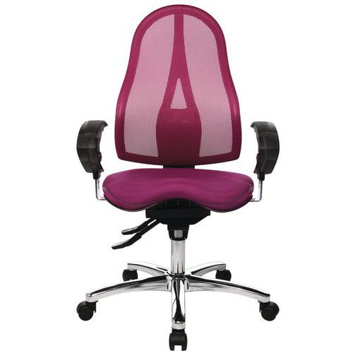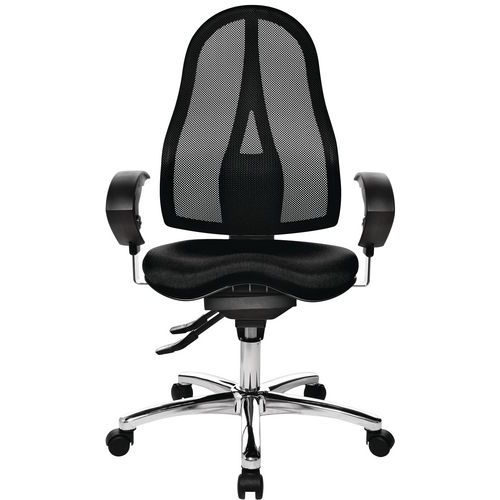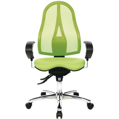 Sedia da ufficio ergonomica a contatto permanente con regolazione in funzione del peso. Seduta mobile Fitness-Ortho in 3D con tecnologia Sitness®, per rafforzare la schiena, avere una postura migliore e un maggior comfort nella vita di tutti i giorni. Martinetto pneumatico per regolare altezza e profondità di seduta. Schienale regolabile in altezza per maggiore comfort. Blocco del meccanismo in 3 posizioni diverse. Maggiore sostegno con i braccioli regolabili in altezza da 26 a 32 cm.