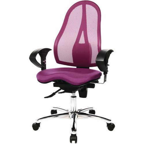 Sedia da ufficio ergonomica a contatto permanente con regolazione in funzione del peso. Seduta mobile Fitness-Ortho in 3D con tecnologia Sitness®, per rafforzare la schiena, avere una postura migliore e un maggior comfort nella vita di tutti i giorni. Martinetto pneumatico per regolare altezza e profondità di seduta. Schienale regolabile in altezza per maggiore comfort. Blocco del meccanismo in 3 posizioni diverse. Maggiore sostegno con i braccioli regolabili in altezza da 26 a 32 cm.