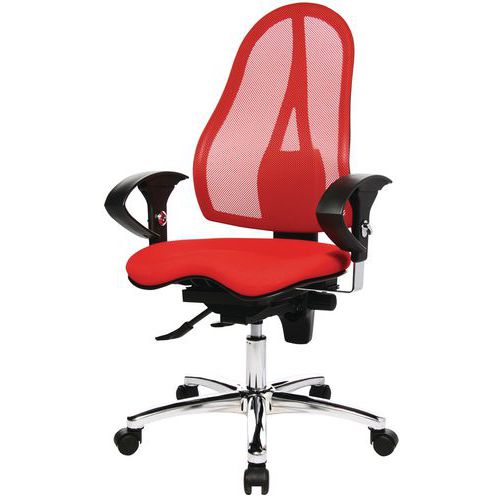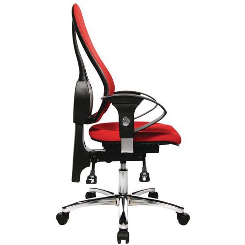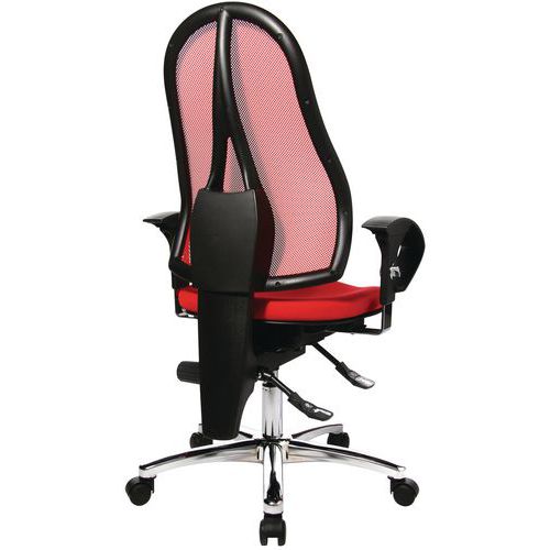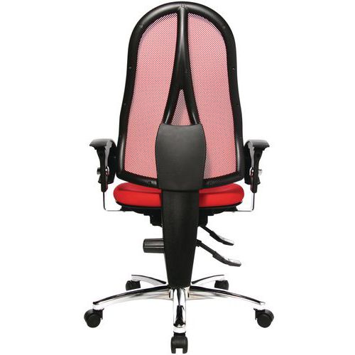 Sedia da ufficio ergonomica a contatto permanente con regolazione in funzione del peso. Seduta mobile Fitness-Ortho in 3D con tecnologia Sitness®, per rafforzare la schiena, avere una postura migliore e un maggior comfort nella vita di tutti i giorni. Martinetto pneumatico per regolare altezza e profondità di seduta. Schienale regolabile in altezza per maggiore comfort. Blocco del meccanismo in 3 posizioni diverse. Maggiore sostegno con i braccioli regolabili in altezza da 26 a 32 cm.