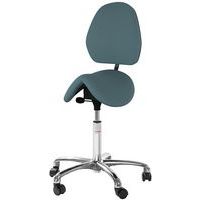 Classico sedile a sella media che offre una postura rilassata e schienale dritto. Offre la possibilità di regolare rapidamente l'angolazione del sedile e dello schienale utilizzando due piccole molle a gas. Sella imbottita con schiuma fredda e tessuto CURA. Dotato di base in alluminio e rotelle. Facile da spostare.