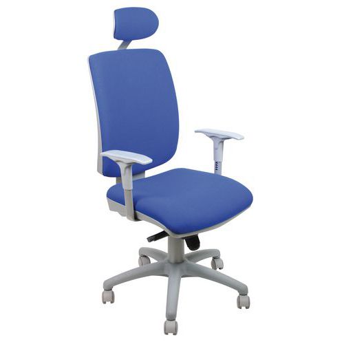 Sedia girevole operativa a contatto permanente con elevazione a gas. Schienale regolabile up - down, anti shock, synchro con 4 blocchi. Possibilità di scegliere rivestimento e colore. Seleziona il modello con o senza poggiatesta.