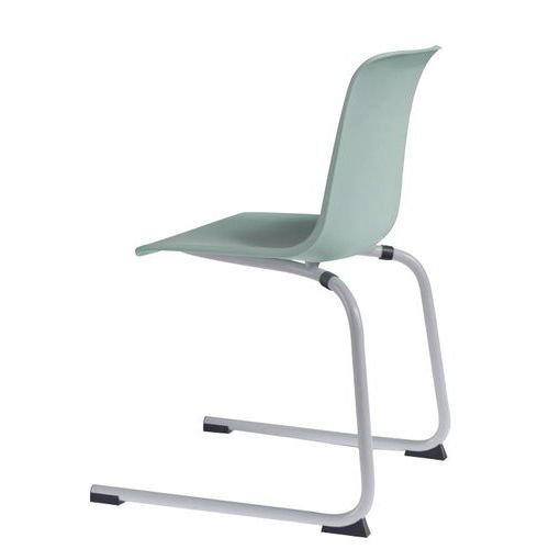 Sedia con due piedi a L. Stabilità grazie al piede di appoggio. Comodo schienale.