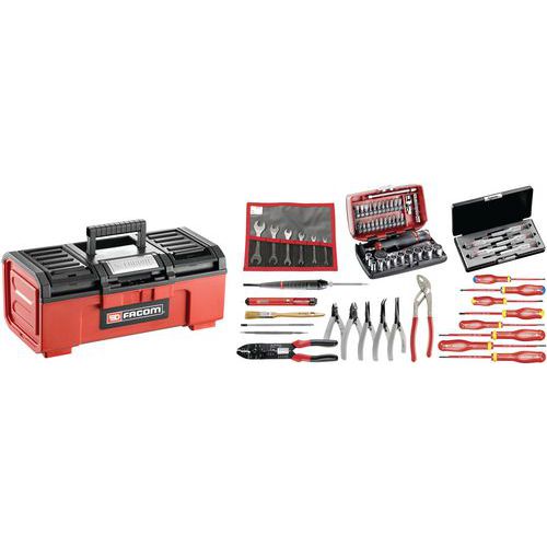 | Descrizione | Selezione elettricista 69 strumenti, Peso: 6007 g, N. di scomparti: 3, Colore: Rosso |