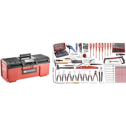 5 Opzioni disponibili: CM.E18: Selezione venduta senza contenitore. 2070.E18: Selezione venduta con cassetta degli attrezzi in metallo BT.13A. 2120.E18: Selezione venduta con cassetta degli attrezzi in tessuto BS.T20. BPC24N.E18: Selezione venduta con cassetta degli attrezzi in plastica BP.C24N. DS295.E18: Selezione venduta con cassa a 3 cassetti Tough System BSYS.BPC2T.