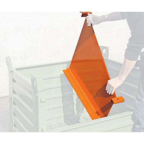 | Descrizione | Separatore rimovibile per cassa-pallet in metallo, Tipo prodotto: Separatore, Materiale: Acciaio |