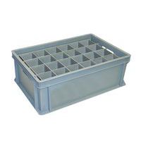 Separatori per bicchieri da inserire nei contenitori impilabili a norma europea Rako 3-208Z-0 o 3-201Z-0 a seconda dei modelli. I contenitori possono contenere fino a 40 bicchieri.
