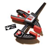 Semplice da utilizzare: passaggio dal serraggio al divaricamento mediante un pulsante. Pressa EZS per manipolazione facile del serragiunti. Morsa in materiale tenero per proteggere i pezzi da lavorare. Impugnatura in due materiali ergonomica per una maggiore potenza di serraggio.