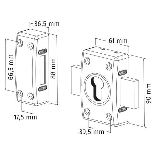 | Descrizione | Serratura di base per cilindro europeo, Scatola larghezza: 61 mm, Scatola altezza: 90 mm |